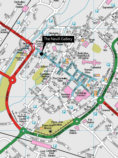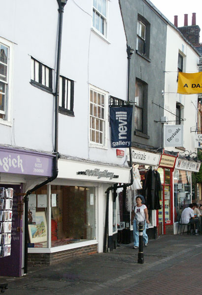 The Nevill Gallery is in Canterbury town centre at 43 St. Peter's Street, the continuation of the high street towards the Westgate towers.