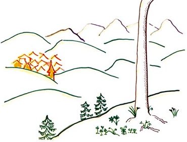And the whole day through, the Sun had been shining criss-cross all over the country, smiling on everything and everyone in the whole wide world. When evening set in and the light began to fade, the purple holes in the ground sent out their cooling breath - right up into the tree-tops where the busy birds stopped chattering. Struck with awe, they turned to that Mecca where the Sun would slowly wheel into his night palace. They pulled their feathers closer together because they knew only too well that it was easy to catch a cold on religious occasions.